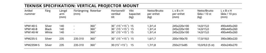VERTICAL är en serie universella stativ för projektorer. Stativen monteras monteras på vägg eller i tak beroende på modell. Modern design och enkel montering gör stativen till ett bra och prisvärt alternativ.